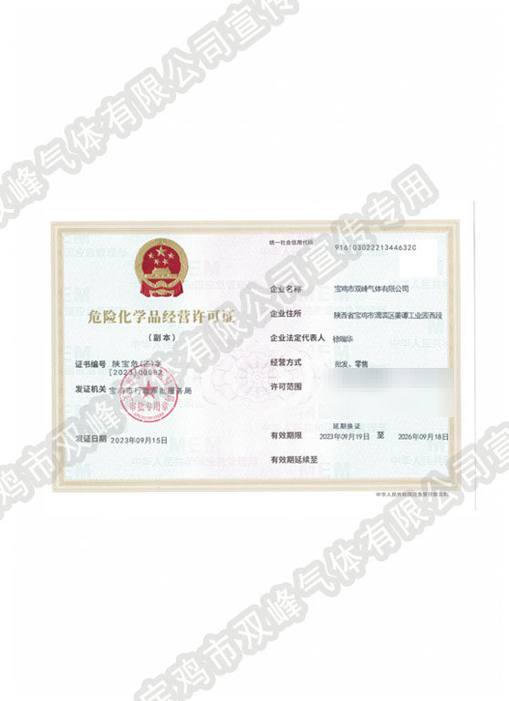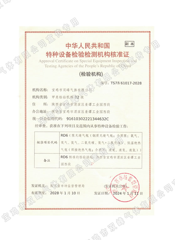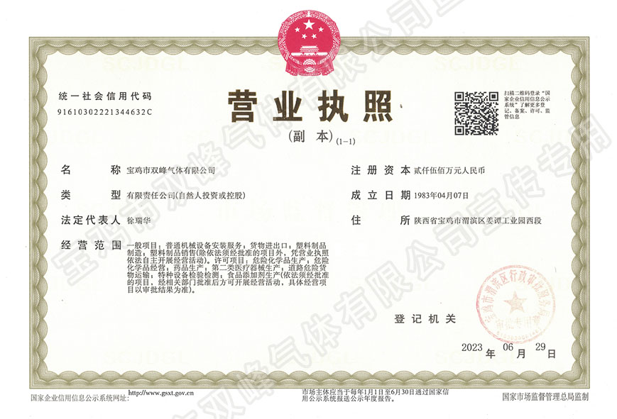 寶雞市雙峰氣體有限公司主營(yíng):標(biāo)準(zhǔn)氣體、工業(yè)氣體、醫(yī)用氣體、軍用氣體、特種氣體、氣體工程、氣瓶檢驗(yàn)、醫(yī)療器械產(chǎn)品的研發(fā)與銷(xiāo)售、危化品道路運(yùn)輸服務(wù)、電子商務(wù)等。公司全資或控股子公司:陜西雙峰氣體科學(xué)研究院有限公司,陜西西咸新區(qū)百花氣體有限公司,陜西愛(ài)心氧療科技有限公司,陜西鳳之翔網(wǎng)絡(luò)科技有限公司,寶雞市光明氣體有限公司。