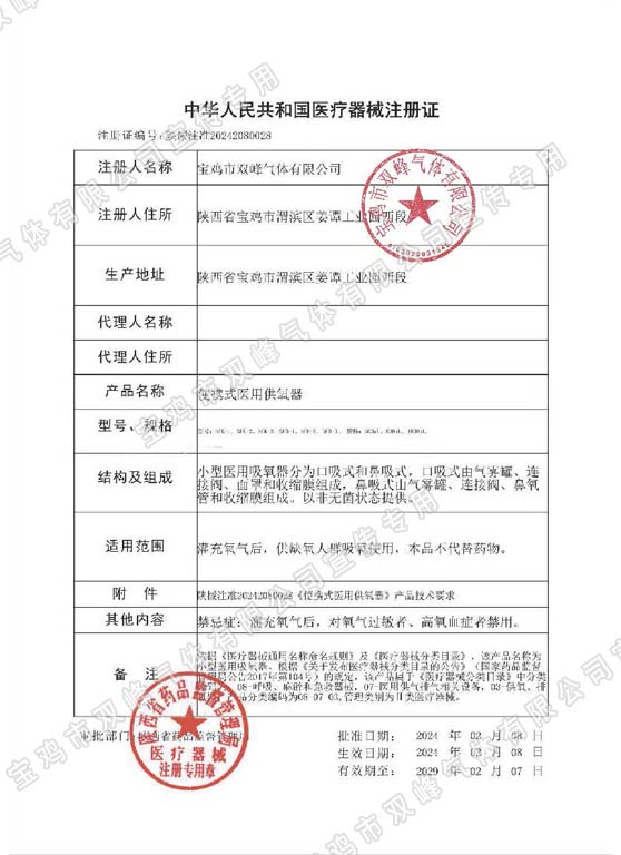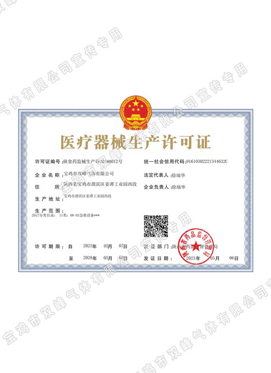 公司始建于1983年,2007年進(jìn)駐姜譚工業(yè)園區(qū),2008年氣態(tài)空分產(chǎn)品建成投產(chǎn),2012年液態(tài)空分產(chǎn)品建成投產(chǎn),2016年醫(yī)療器械產(chǎn)品“便攜式氧氣呼吸器”生產(chǎn)線(xiàn)全部建成投產(chǎn)并取得上述產(chǎn)品氣態(tài)醫(yī)用氧、液態(tài)醫(yī)用氧中華人民共和國(guó)《藥品生產(chǎn)許可證》、《國(guó)藥準(zhǔn)字》、《藥品GMP證書(shū)》,氧療系列產(chǎn)品“便攜式氧氣呼吸器”中華人民共和國(guó)《醫(yī)療器械生產(chǎn)許可證》、陜食藥監(jiān)械?準(zhǔn)?字和中華人民共和國(guó)《武器裝備質(zhì)量管理體系認(rèn)證證書(shū)》、國(guó)家氣體標(biāo)準(zhǔn)物質(zhì)證書(shū)等。