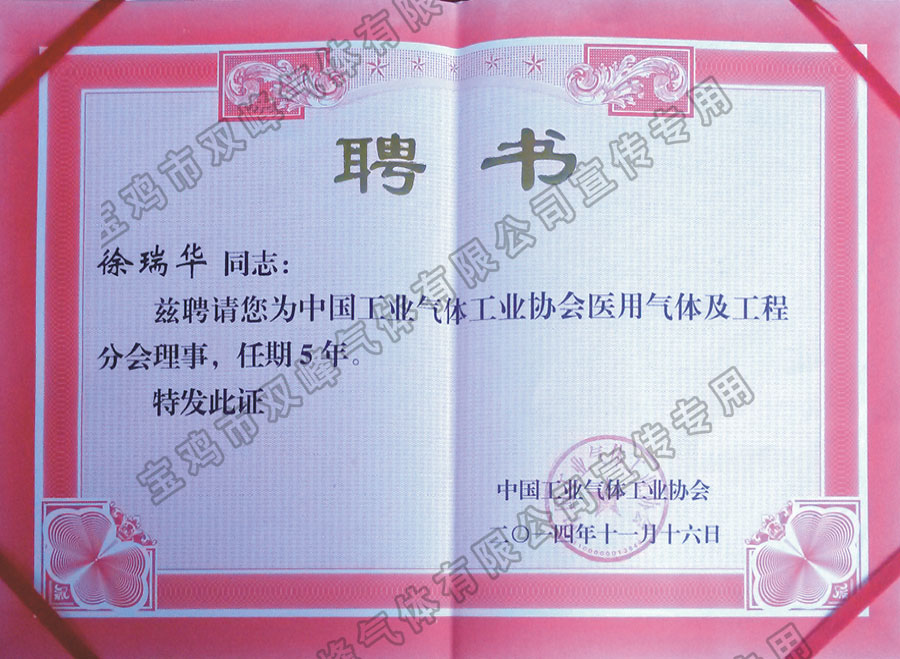 “中國(guó)工業(yè)氣體工業(yè)協(xié)會(huì)”聘書(shū)