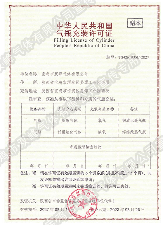 至2019年底,累計(jì)投資1億元人民幣,高起點(diǎn)規(guī)劃、高規(guī)格設(shè)計(jì)、高標(biāo)準(zhǔn)建設(shè),使產(chǎn)品純度高、使用效率高、安全更可靠。公司現(xiàn)有危貨運(yùn)輸車(chē)輛12臺(tái),自有氣體鋼瓶2萬(wàn)多只,各類(lèi)氣體生產(chǎn)、充裝、運(yùn)輸資質(zhì)均符合國(guó)家相關(guān)標(biāo)準(zhǔn),無(wú)縫鋼瓶檢驗(yàn)站取得了陜西省質(zhì)量技術(shù)監(jiān)督管理局頒發(fā)的《氣瓶檢驗(yàn)許可證》,為工廠(chǎng)安全生產(chǎn)和用戶(hù)安全使用提供了可靠的保證。